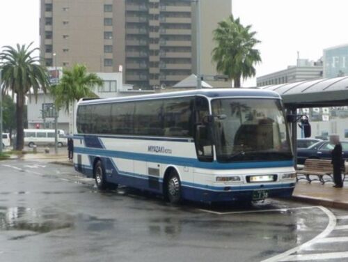 【路線データ】 事業者:宮崎交通 路線名:なんぷう号 車両型:三菱ふそうエアロバス 路線型:高速路線バス(都市間連絡型) 乗車日:平成22年10月20日 乗車区間:宮崎駅~熊本県庁前 【乗車記】 ホテルを出ると結構強い雨。傘を持ってきていないことに少し…