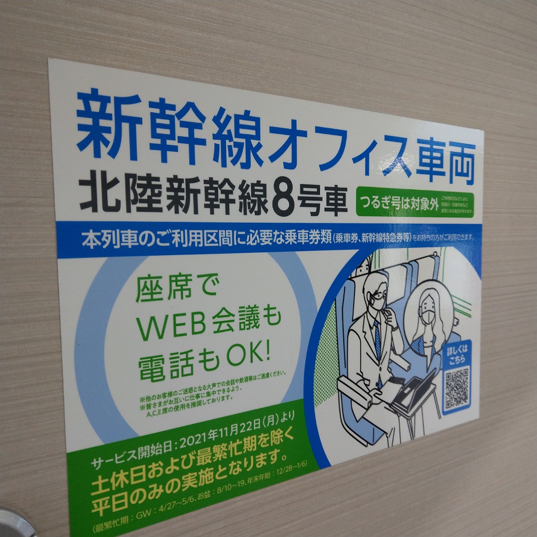 「新幹線オフィス車両」は「かがやき」とか「はくたか」で本領を発揮するんだろうな、と思いました。